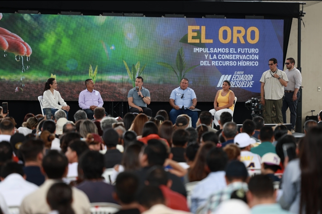 La ministra del ramo, Inés Manzano, explicó que la preservación del agua es el objetivo primordial del gobierno en este 2025. Por ello, también se socializó las cuatro autorizaciones de uso y aprovechamiento de agua para Pasaje y Piñas; la legalización de las directivas de cuatro organizaciones comunitarias que se encargarán de los servicios del recurso hídrico para riego, drenaje, agua potable y saneamiento en Zaruma, Pasaje y Camilo Ponce Enríquez.