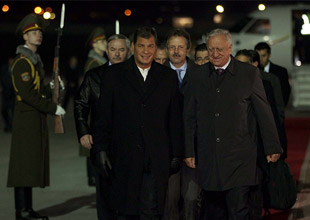 Minsk (Belarus).- En medio de un intenso frío arribó el Presidente Rafael Correa a Minsk , capital de Belarús, para cumplir una apretada agenda que incluirá una reunión bilateral con el Mandatario Aleksander Lukashenko.