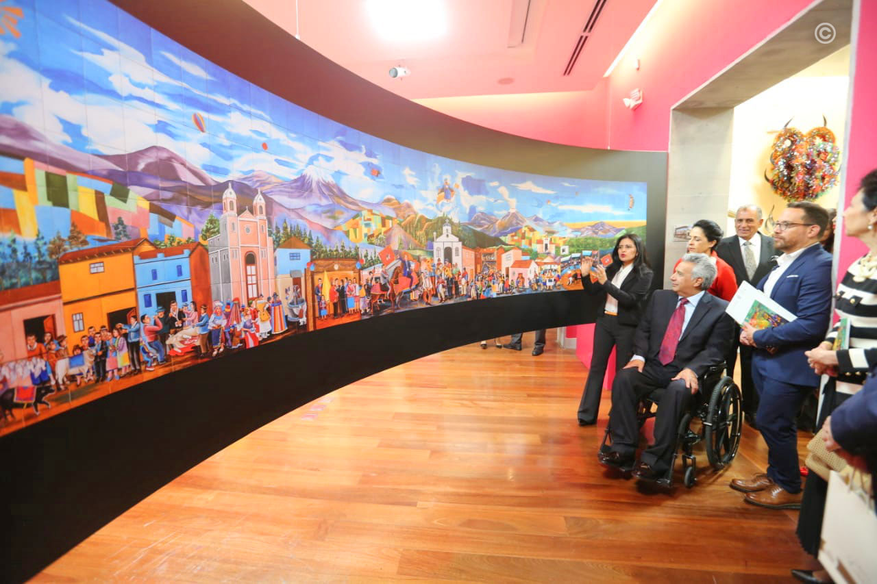 Quito, Ecuador – Representaciones artísticas de la diversidad cultural del país llegaron al Palacio de Gobierno este miércoles 19 de febrero con la inauguración de la muestra “Alma, tradición y vida: fiestas populares en el Ecuador”. El evento contó con la participación del primer mandatario, Lenín Moreno; la presidenta ad honórem del Comité Interinstitucional del Plan Toda Una Vida, Rocío González; ministros de Estado y actores del sector.