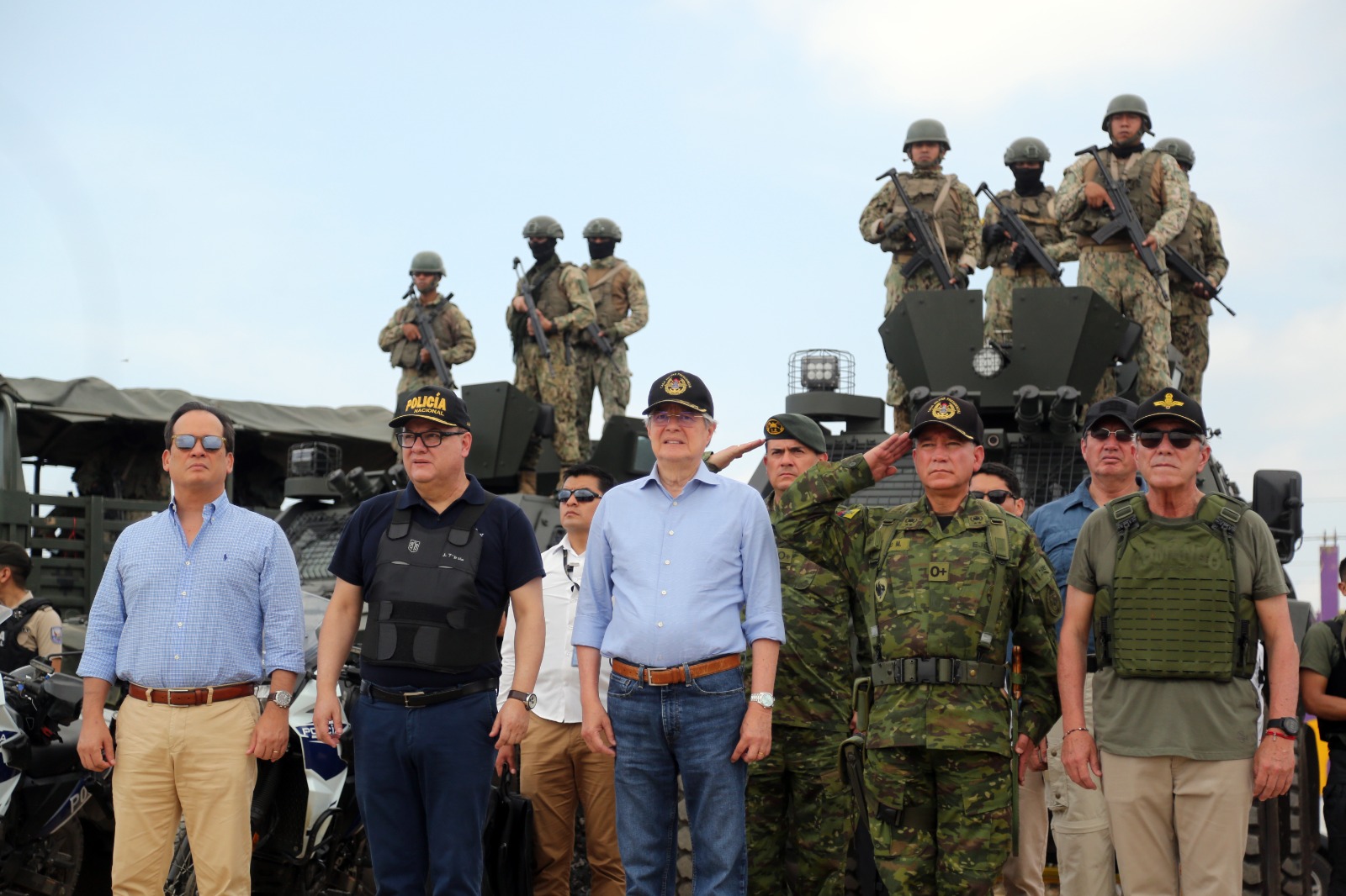 Esta mañana 500 soldados y 500 policías llegaron a Durán para complementar el trabajo que las fuerzas del orden ejecutan en esta localidad. “De su valentía, de su decisión depende vencer a ese enemigo que pretende tener control absoluto en el cantón Durán. Ustedes tienen un arma de dotación, tienen equipos nuevos como los vehículos blindados Cobra; tienen experiencia y tienen decisión”, expresó el Mandatario al saludarlos.