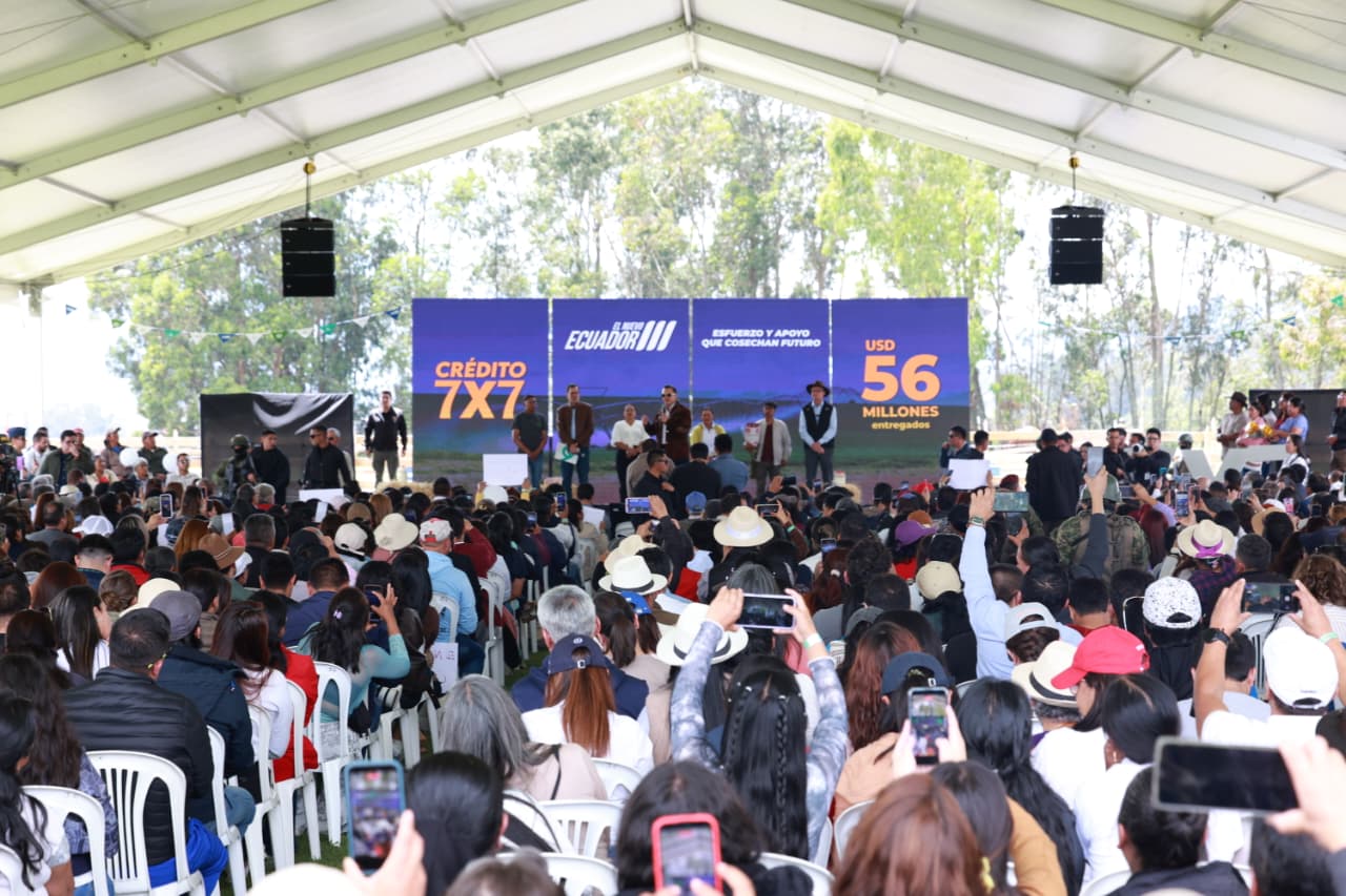 En este acto que convocó la presencia de autoridades, productores y emprendedores, el Mandatario detalló que desde septiembre del año pasado se han entregado más de USD 56 millones a través de estos créditos. “Son más de 5.000 beneficiarios que hoy cuentan con recursos para empujar sus sueños y construir un futuro con esperanza”, resaltó el Presidente.