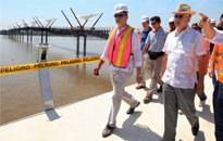 Durán (Guayas).- Cerca del mediodía el Presidente Rafael Correa recorrió el Puente Durán-Santay, que tiene una extensión de 675 metros de longitud.