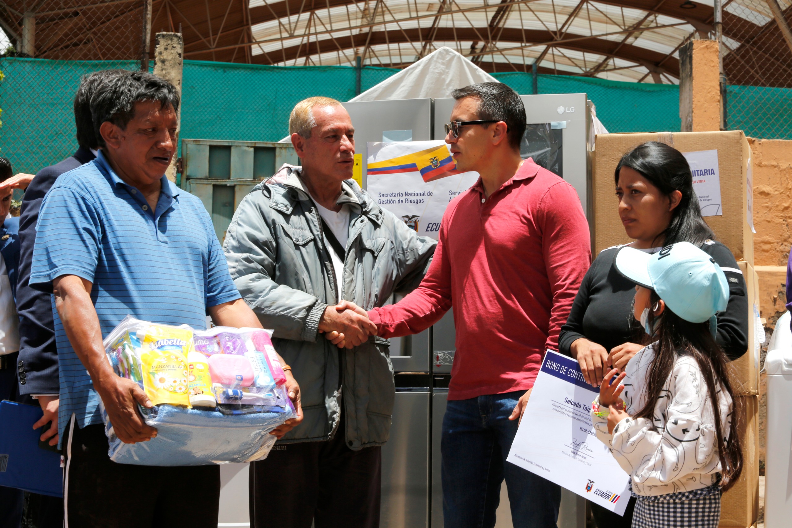 LA ATENCIÓN GUBERNAMENTAL A LA GASCA CONTINÚA, EL PRESIDENTE NOBOA ENTREGA BONOS, ELECTRODOMÉSTICOS Y KITS DE ASISTENCIA HUMANITARIA