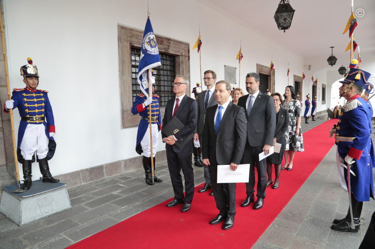 Quito, Pichincha – Embajadores de ocho países presentaron sus cartas credenciales al Primer Mandatario la mañana de este jueves 20 de febrero, en el Palacio de Gobierno. Allí el presidente Moreno dio la bienvenida a los diplomáticos y ratificó el compromiso para consolidar las relaciones bilaterales con sus países.