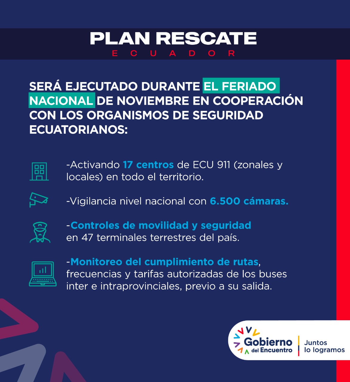 EL PLAN RESCATE ECUADOR SERÁ EJECUTADO DURANTE EL FERIADO NACIONAL DE NOVIEMBRE EN COOPERACIÓN CON LOS ORGANISMOS DE SEGURIDAD ECUATORIANOS: